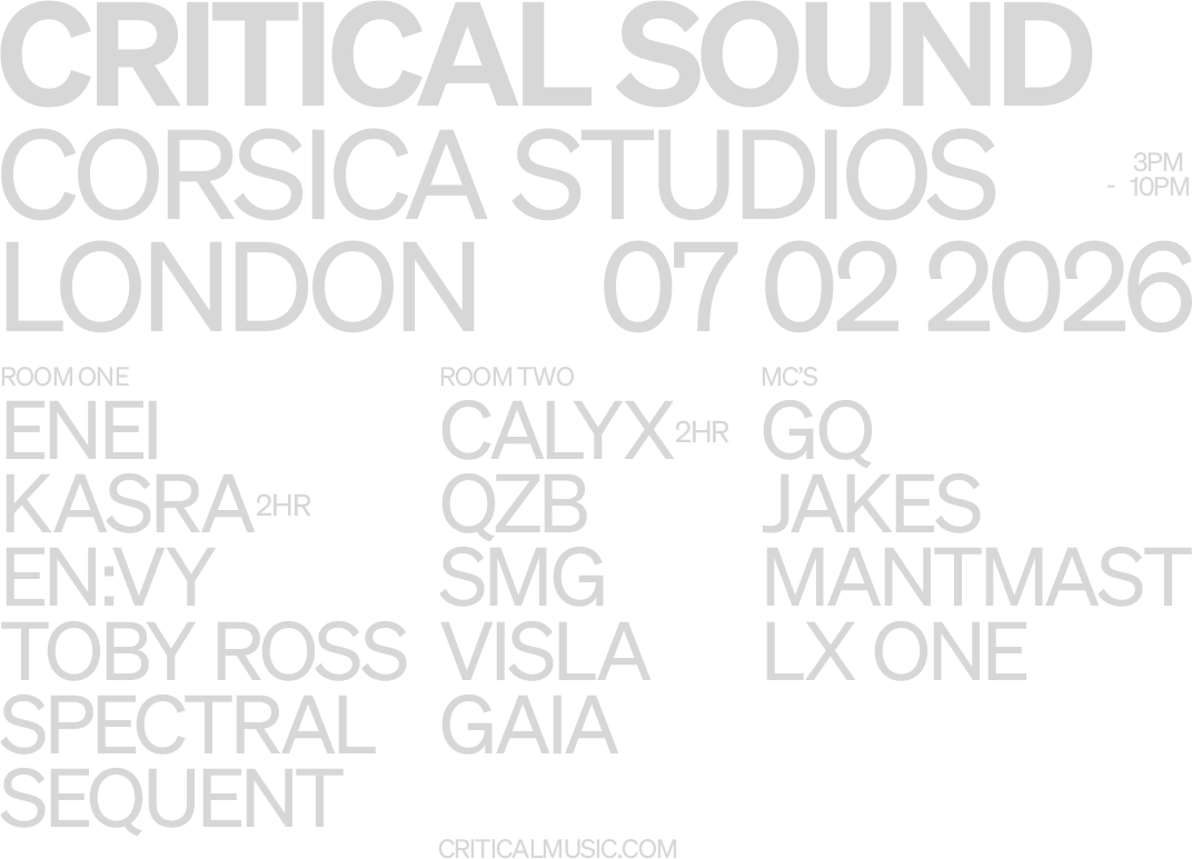To buy tickets for this event please visit our events page: Critical Sound London | Corsica Studios tickets from Skiddle .